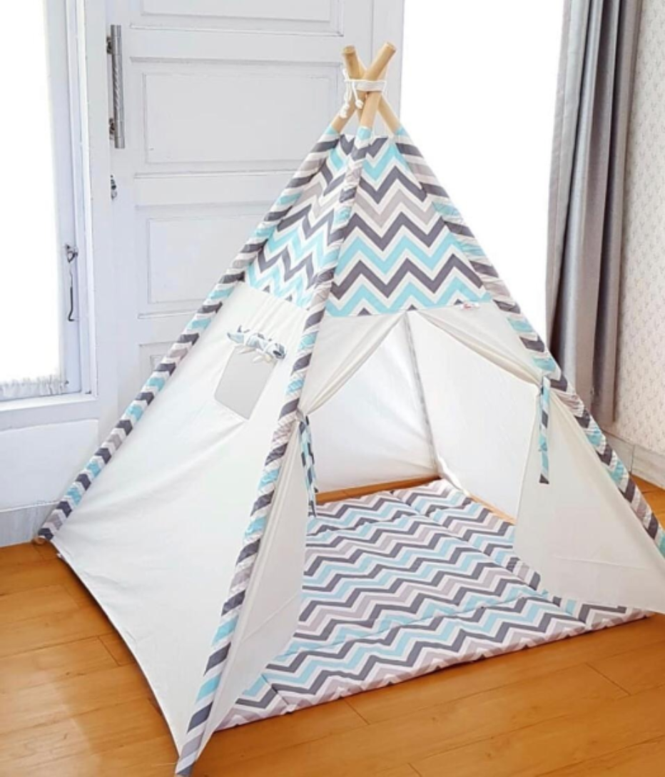role play permainan tenda yang terbuat dari bahan canvas dan kayu natural, dilengkapi dengan alas uk. 100x100x130 sangat baik untuk permainan rumah-rumahan orang indian. Permainan peran ini sangat baik untuk melatih kemampuan sosial, percaya diri, kosa kata dan daya nalar si kecil agar lebih terampil.
