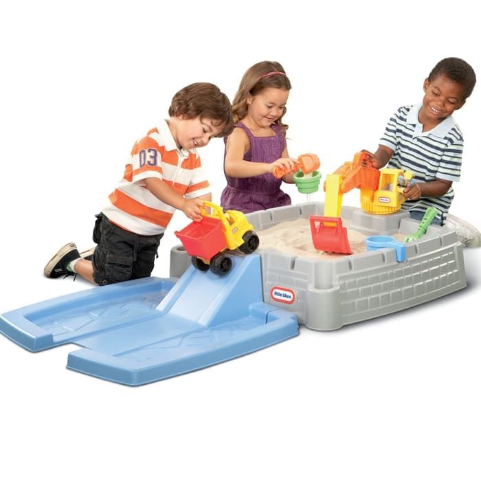 Permainan dengan tema konstruksi, untuk anak 2.5 tahun melatih sensorik anak dengan pasir yang dilengkapi dengan escavator & truck.