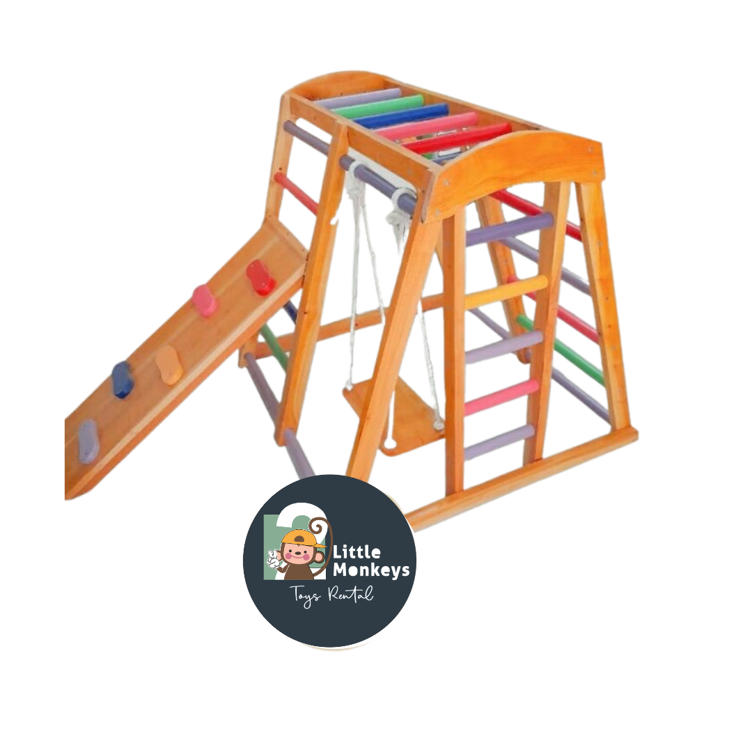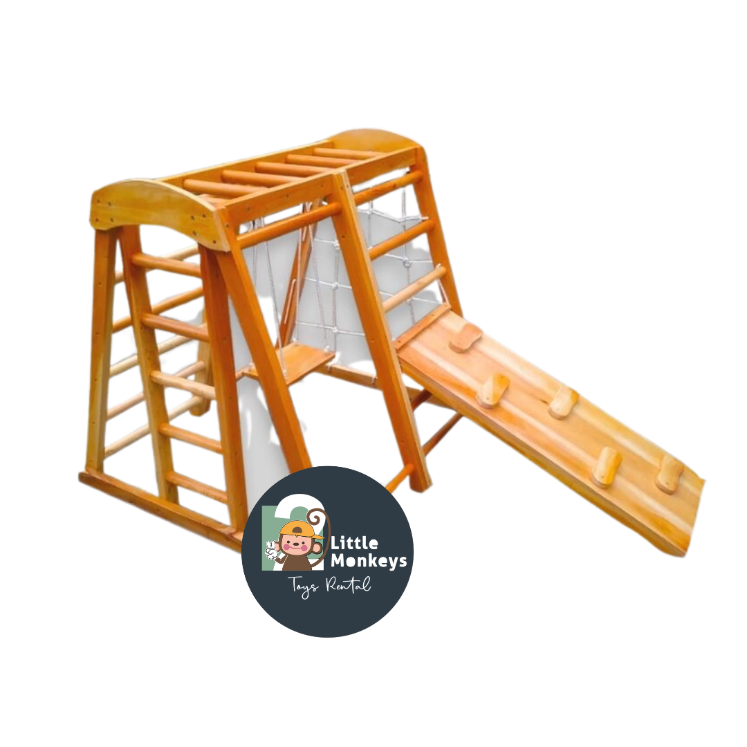 Mainan ini didesain untuk brakiasi/bergelantungan sehingga mampu melatih otot dan ketangkasan anak. Selain itu juga sangat bermanfaat untuk mengembangkan kemampuan motorik kasar anak, mengontrol keseimbangan, kreativitas, melatih keberanian anak dan fokus pada anak.