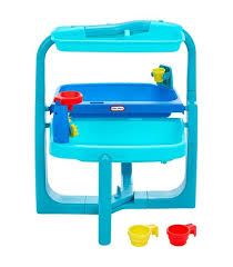 * The Little Tikes Easy Store Water Table easily folds up and is compact to store and take with you. With a 360 degree play area for multiple kids to play, and a top rain shower tray for added water fun, this will keep kids busy and happy for hours. 2 scoop accessories are included and snap right into the table while storing or moving. Recommended for Boys and Girls ages 2+ years.