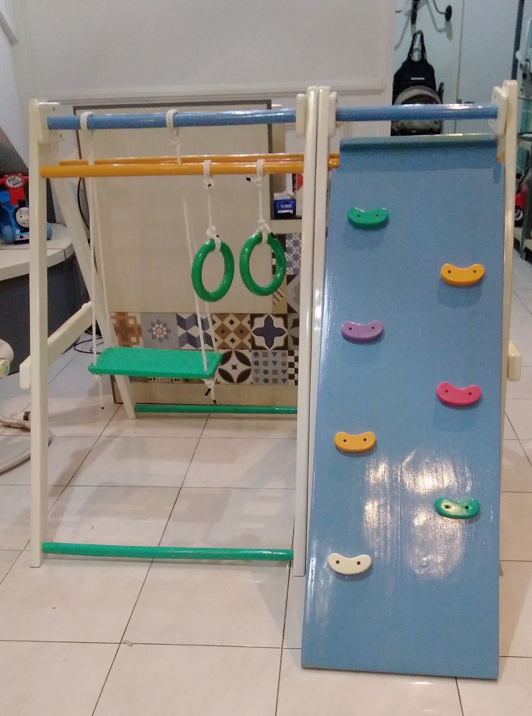 Mainan ini didesain untuk brakiasi/bergelantungan sehingga mampu melatih otot dan ketangkasan anak. Selain itu juga sangat bermanfaat untuk mengembangkan kemampuan motorik kasar anak, mengontrol keseimbangan, kreativitas, melatih keberanian anak dan fokus pada anak.