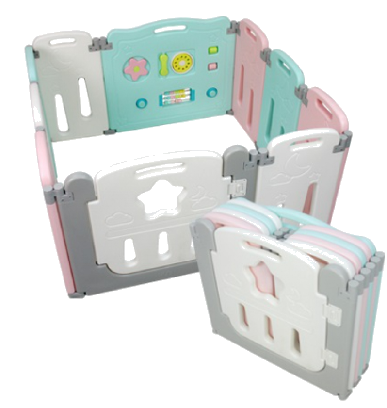 Pagar bayi yang terdiri dari 8 panel kecil + 2 panel besar pintu dan 1 game board. Berat 22kg. Tinggi 64cmx200cmx200cm. Bisa dibentuk sesuai kebutuhan.
